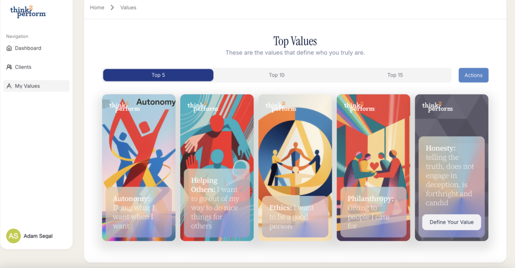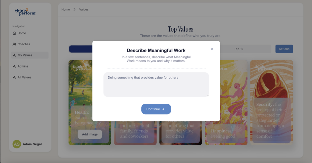 Our redesigned Values Exercise is built to help people get clearer, faster, and more confidently connected to what matters most. We’ve taken everything users loved about the original version and made it more intuitive, more personalized, and significantly easier to use. With improved functionality, a cleaner interface, and a guided experience from start to finish.